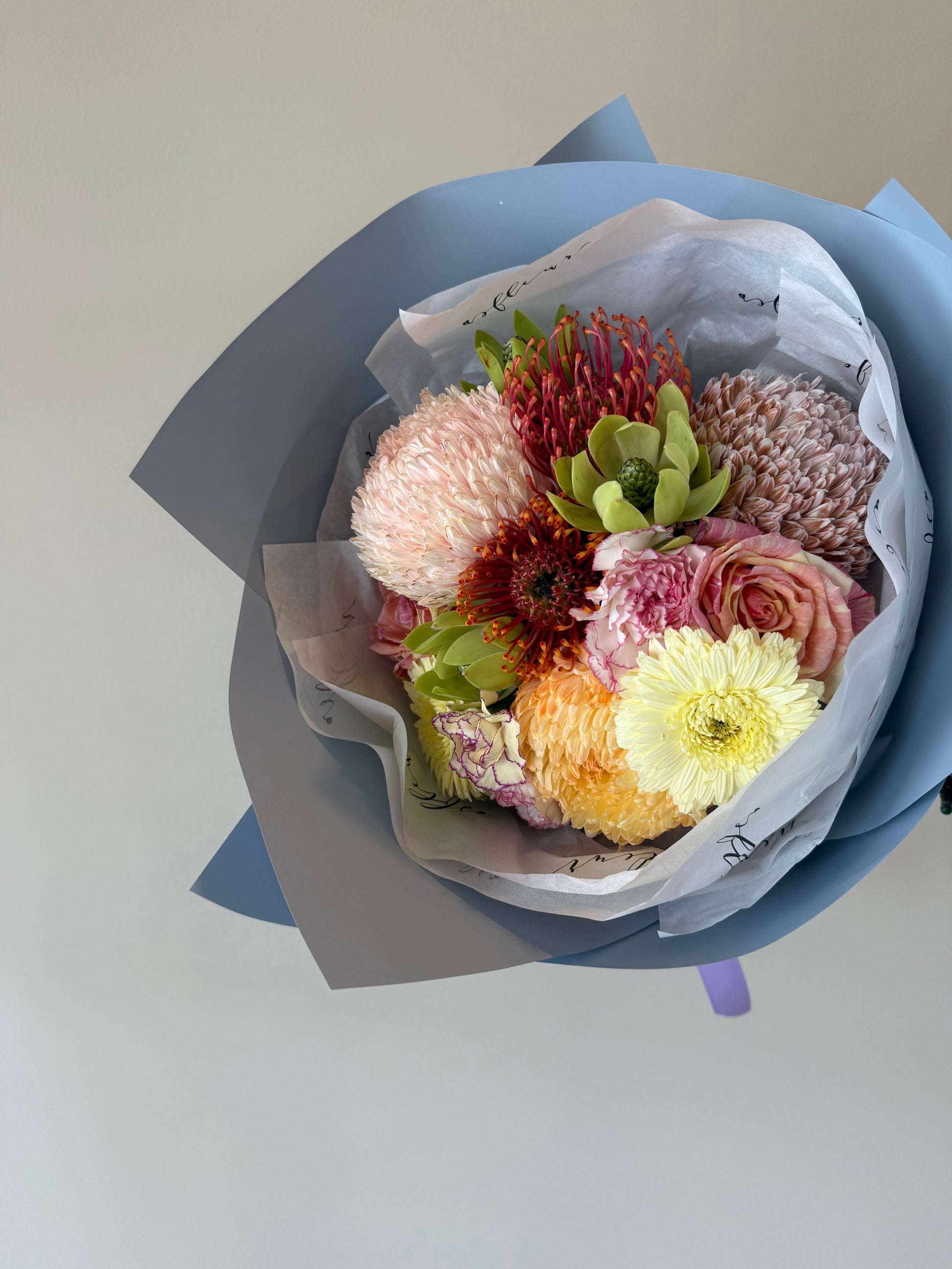 At AS FLEUR, all floral products are made to order. We appreciate what we are doing and always delivering the best premium product to customers. Our florist creates your order based on the style you selected and pick the best possible flowers from our suppliers. Please note, as the nature of floral products there may be some variation of flower varieties and colour tones due to seasonal and market availability.