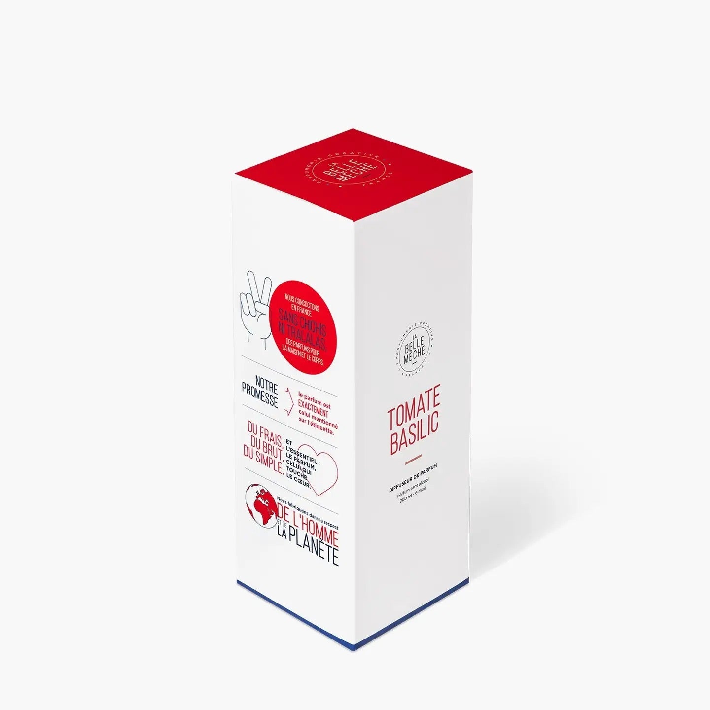 The Tomato Basil scent is inspired by the vegetable garden of our childhood, in the countryside, where we picked vegetables with our grandparents on a hot summer day. Fresh and tonic notes of basil leaves mixed with the green stem of the tomato. Then the notes of blackcurrant and fig in the background soften this intriguing fragrance! A diffuser, an ideal fragrance tool for an entrance, a bathroom, a dressing room, an office or a toilet: in short, places of passage where we enjoy being welcomed by a fragrance. 6 months of subtle but non-stop diffusion!